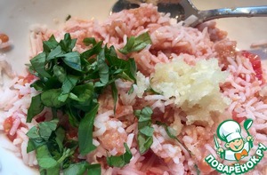 Перемешайте начинку. Добавьте оливкового масла и соль по вкусу и начините томаты!