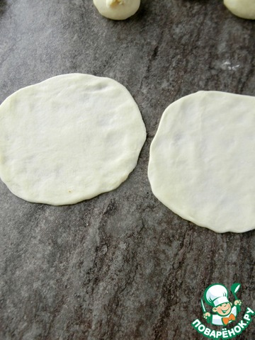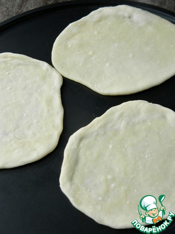 Раскатать шарик теста в лепешку, достаточно тонко.