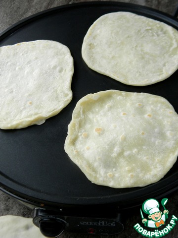 Жарить лаваш на сухой сковороде. Я жарила на электроблиннице, на ней можно уместить сразу три лепешки.