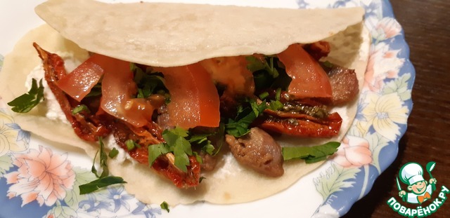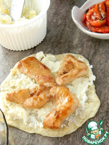 Рецепт «Лаваш с курицей, сыром и вялеными томатами»: