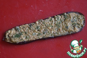 Взять 1 ломтик баклажана смазать 1 ч. л. пастообразной массы.