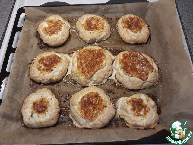 Теперь нужно поместить противень в разогретую до 200 градусов духовку, будем запекать гнездышки минут 30, до зарумянивания начинки.