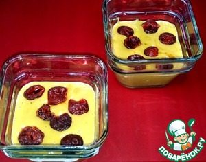 В каждую ёмкость положила по семь сушенных без косточек вишен.