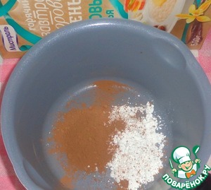 • Тем временем соединяем кукурузный крахмал, какао-порошок, соль и ванилин.
