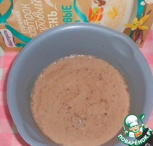 Итак, понадобятся рисовые хлопья ТМ "Мистраль". Хлопья заливаем горячей водой или молоком, накрываем и отставляем в сторону.