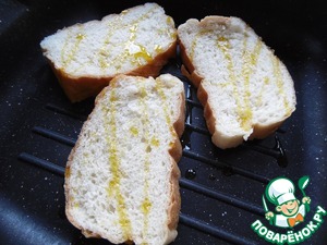 Ломтики хлеба сбрызнуть оставшимся маслом, подсушить на горячей сковороде-гриль.
