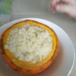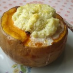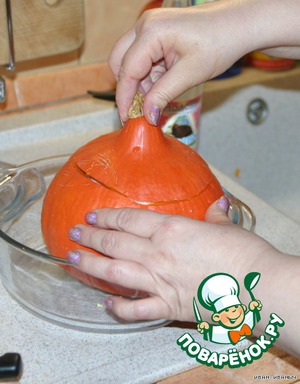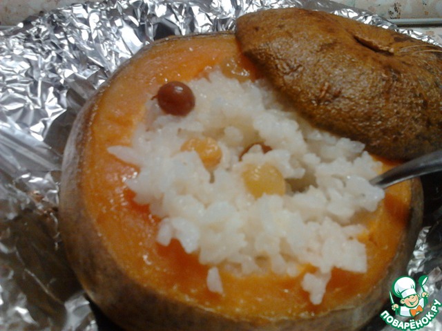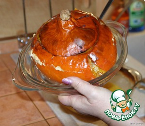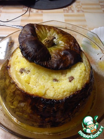 И вот через полтора часа вынимаем тыкво-горшок из духовки.