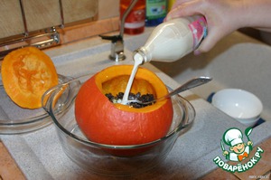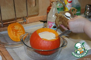 Укладываем тыкву в посудину и собираем все продукты. Перечислять смысла нет - всё и так видно.