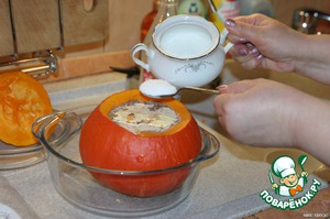Если кому интересно, то 1 стакан пшена нужно 4 стакана жидкости. А так нужно смотреть по объёму своей тыквы. Свем успехов и вкусных рецептов.