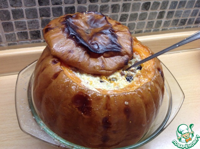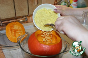 Закладываем в тыкву пшено.