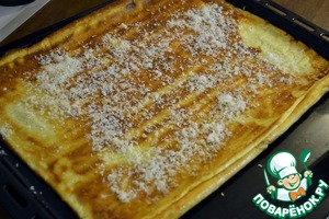 Развернуть, еще теплый корж посыпать оставшимся (10 гр)