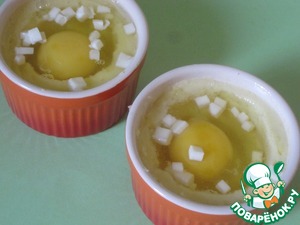 В каждое картофельное "гнездо" вбить сырое яйцо.