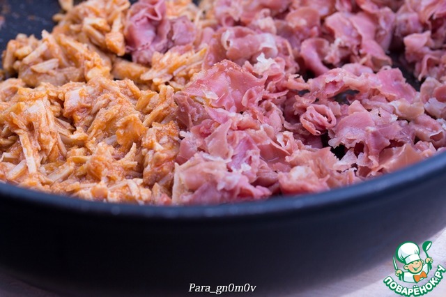 4. Как вариант, можно приготовить начинку из смеси тушеной свинины и чуть обжаренной мелко нарезанной ветчины.