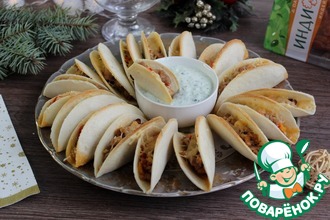 3. Свинину залить соусом, добавить около 150 мл воды и тушить около 2 часов на медленном огне под крышкой. Можно тушить в духовке при температуре не выше 150 градусов, можно в мультиварке. По готовности вынуть мясо и разделить руками или с помощью вилки на волокна. Добавить оставшийся от жарки соус так, чтобы начинка стала влажной и сочной.