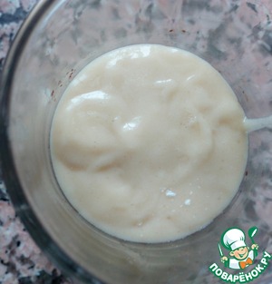 Последние 18 г яйца, масло, молоко, сахар и муку хорошо помешать. Переложить в общий стакан.