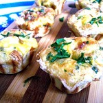 Яичную смесь распределить поровну по корзиночкам и сразу же (чтобы корзиночки не размокли) отправить в духовку на 15-20 минут.