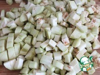 Нарезаем кубиками. Немного солим и оставляем на 5 мин. |