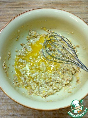 Затем к хлопьям добавить растопленное сливочное масло, еще раз перемешать.