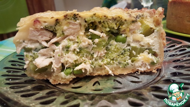 Рецепт «Киш с брокколи, курицей и горошком»: