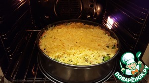 Через 20 минут открываем духовку и посыпаем киш сыром.