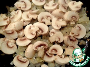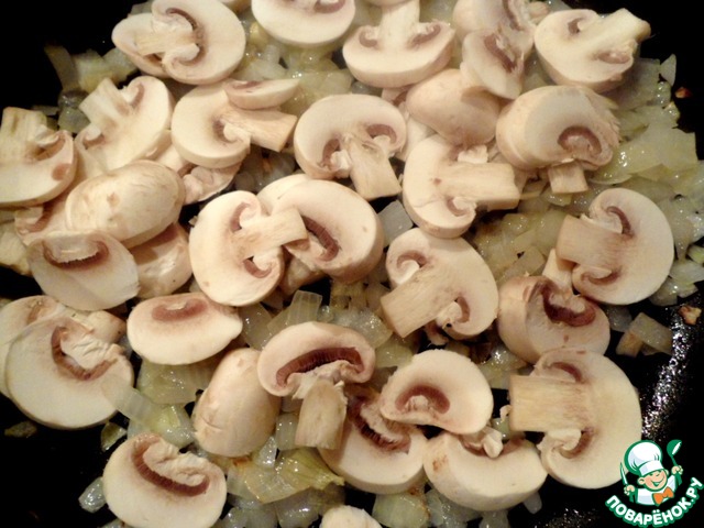 Нарезать лук и шампиньоны, обжарить на растительном масле до готовности, посолить, поперчить.