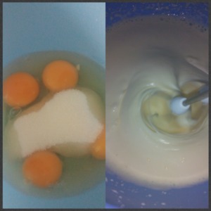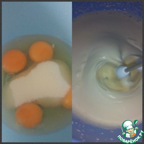 Кол-во сахара и варенья можно регулировать на свой вкус. Яйца и сахар взбиваем в пышную, белую массу в течении 5-8мин