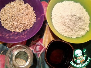 Приступим к тесту. Соединяем муку, хлопья, воду и масло. Вымешиваем до гладкости и упругости.