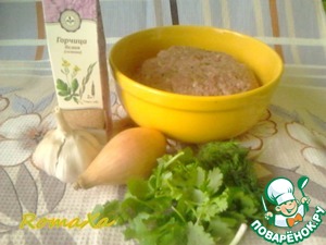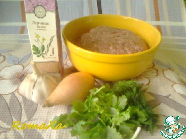 Смешиваем фарш индейки с бараньим фаршем, добавляем мелко порезанные кинзу, укроп, чеснок и семена белой горчицы. Солим, перчим, перемешиваем и отбиваем