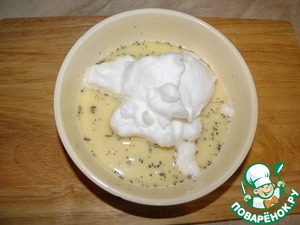 Белок отдельно взбить с щепоткой соли, в крутую пену.