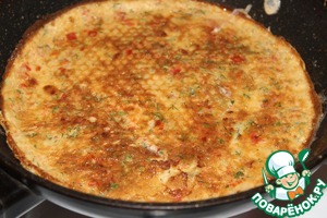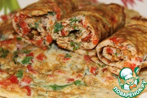Для рулетиков яйца взбить миксером, добавить мелко нарезанный болгарский перец, зелень, соль и перец.