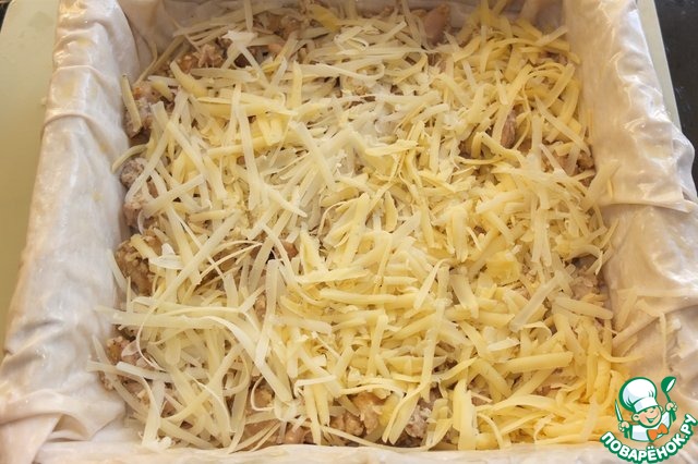 Ставим пирог в разогретую до 180 градусов духовку на минут до зарумянивания.