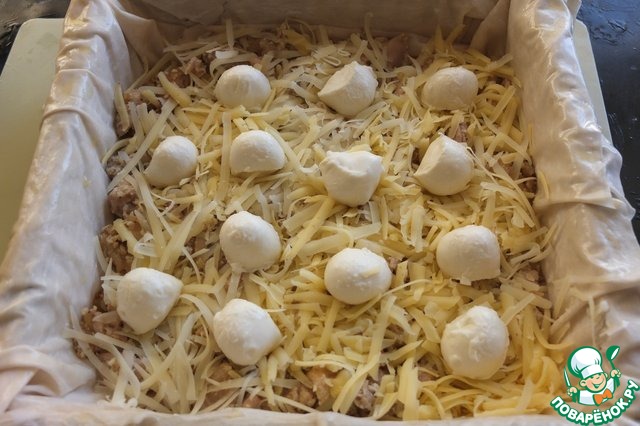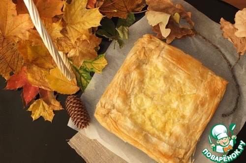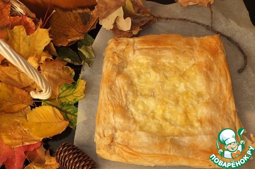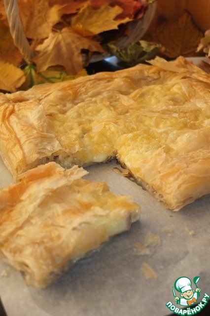 Изучая рецепты Гордона Рамзи наткнулась на рецепт Марокканского пирога. Простая, вкусная, эффектная выпечка. В оригинальном рецепте пирог приправлен корицей и сахаром, и посыпан сахарной пудрой. К таким вкусовым экспериментам ни я, ни моя семья не готовы! Поэтому мой пирог получился по мотивам!