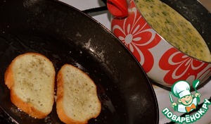 Пока варится суп, можно обжарить хлеб для тостов, обмакнув их в масле и обсыпав майораном. Для эксперимента я намазала их мёдом, получилось очень вкусно.