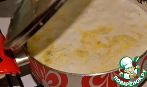 Суп накрыть крышкой и варить до готовности яиц (минуты три). -