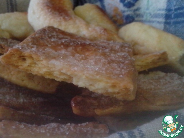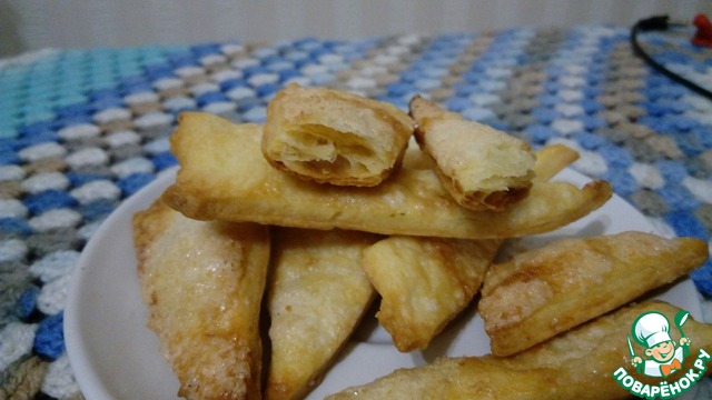 На мой взгляд это вовсе не слоёное тесто, получилось скорее песочное печенье.