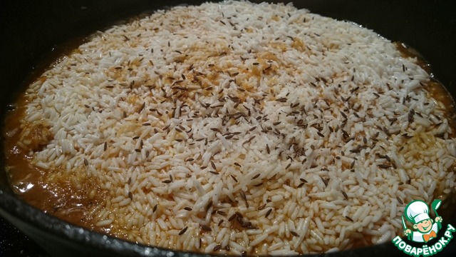 • Некоторое время всю смесь обжариваем, пока кухня не наполнится ароматом плова!