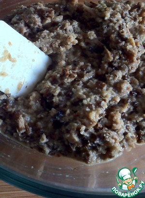 Грибы несколько раз промыть и замочить в двух литрах холодной воды. Затем отварить 30 минут, вынуть грибы, а отвар процедить. Грибы мелко нарезать или измельчить в блендере. Должны попадаться кусочки разного размера.