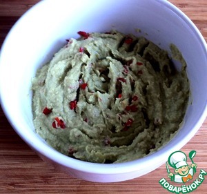 • Постепенно влить заправку, смешивая блендером. Затем аккуратно подмешать мелко нарезанный чили.