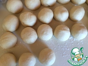 Делим все тесто на порции. Я брала по 60 гр. Подкатываем.