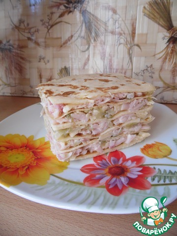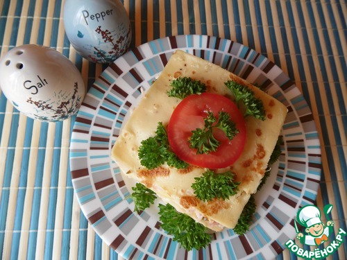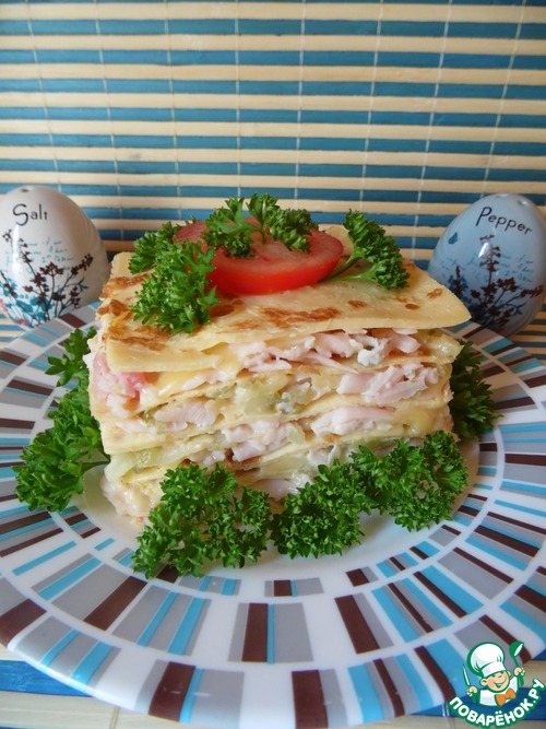 Рецепт «Слоеная закуска из омлета с сыром и ветчиной»: