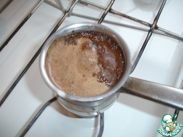 Поставить на огонь, держать, пока шапка пены начнет подниматься. Отставить. Перемешать. Опять поставить на огонь, пусть снова поднимется шапка пены.