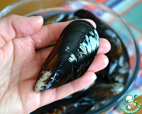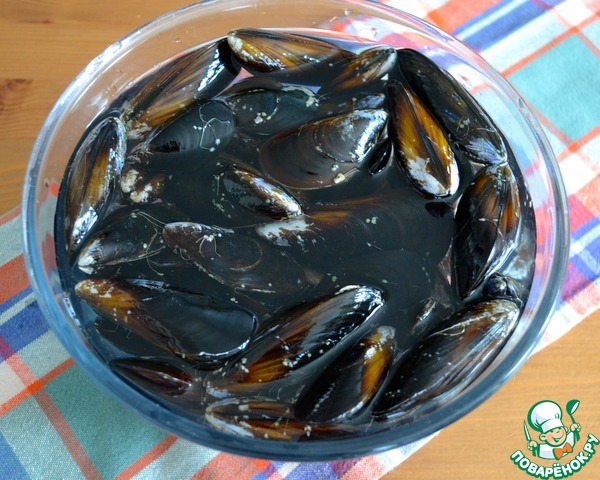 • В первую очередь надо подготовить мидии... Для этого необходимо как следует их помыть; соскрести с раковин приставший к ним известковый налет или водоросли. Удалить "бородку".