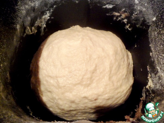 Все ингредиенты теста положить в хлебопечку и оставить подходить в режиме "Тесто".