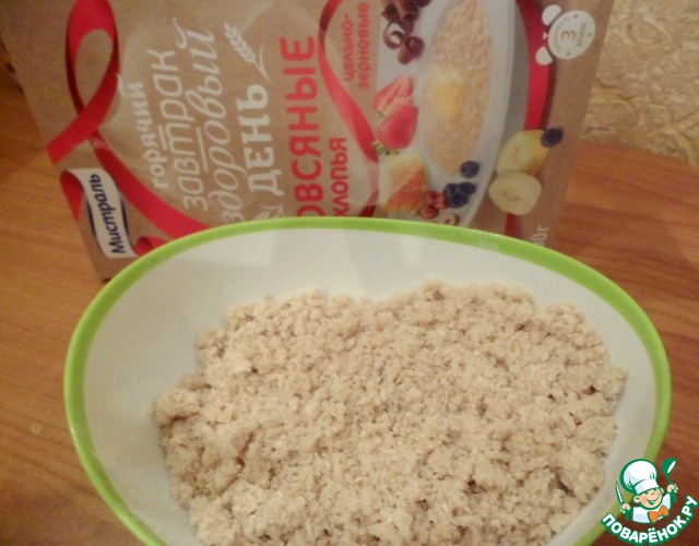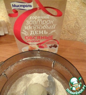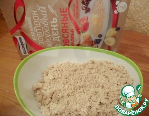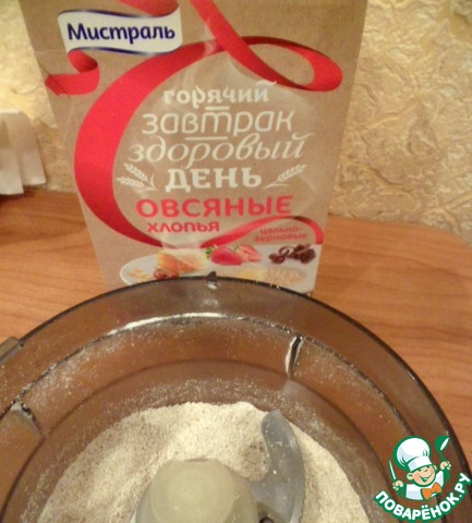 Овсяные хлопья цельно-зерновые ТМ Мистраль измельчить блендером в мелкую крошку.