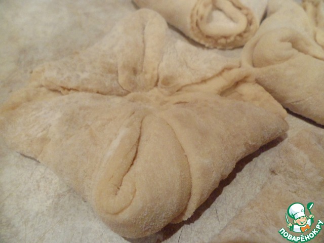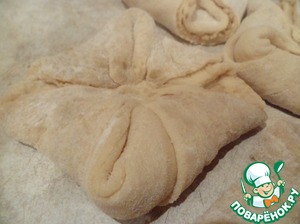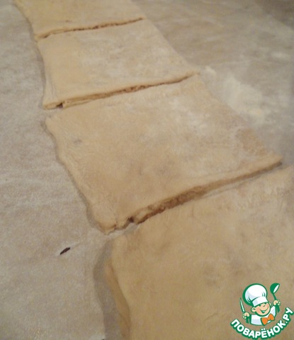 Тесто нарезать на 12 квадратов.