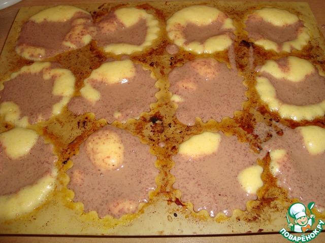 А тесто сверху 1 ст. ложку и также отправляю в духовку при 160 градусах на 30 минут.