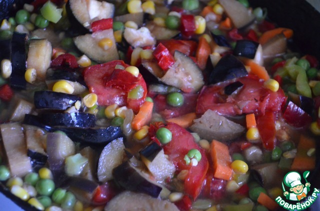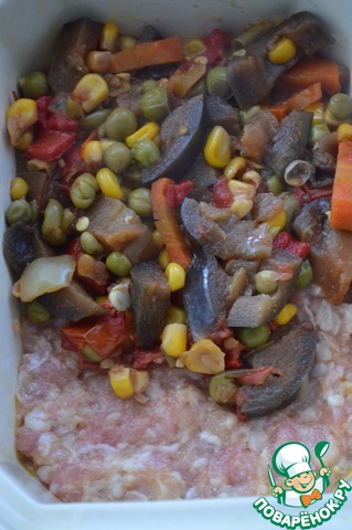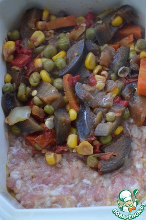 Рецепт «Мясная запеканка с рисовыми хлопьями и овощами»: