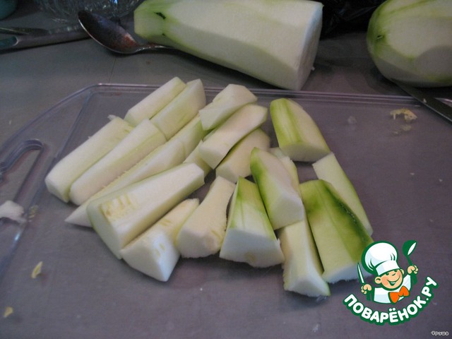 Кабачки порезать дольками и очистить от семечек.