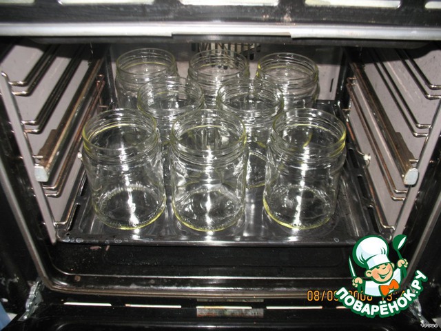 Банки стерилизую в духовке: мою и ставлю на 190 гр на 15 минут. -