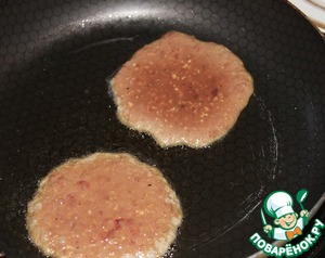В сковороду налить 3-4 ст. л. растительного масла. И обжарить печеночные оладушки, чем больше будет их диаметр, тем проще будет вырезать из них кружочки.